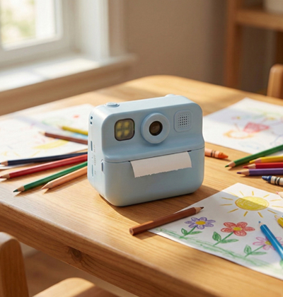 - Rozvoj kreativity a jemné motoriky: Fotografie se tisknou černobíle (termotisk). Děti si je tak mohou ihned vybarvit, vystřihnout a vytvořit si z nich koláže, deníček zážitků nebo nástěnku přátelství.
